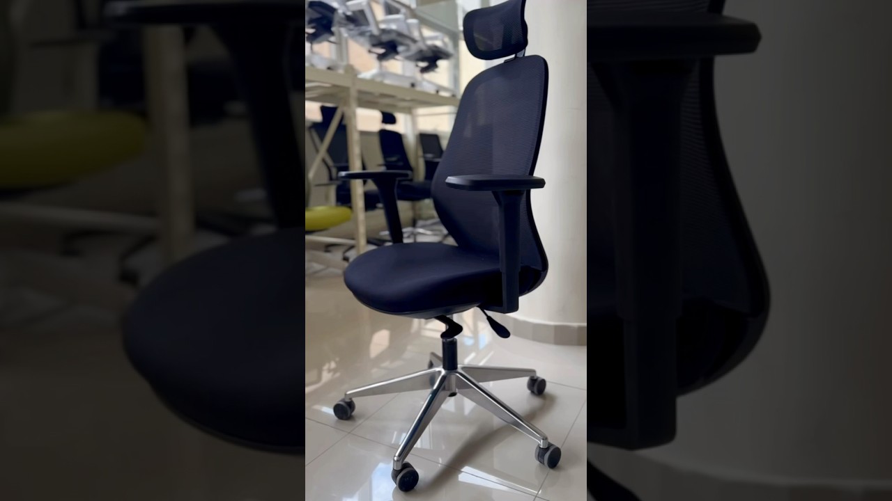 kgكرسي مكتب أسود عالي الجودة مزود بمسند رأس شبكي متحرك، ظهر شبكي مع داعم ظهر متحرك، مساند يد ثلاثية الحركة، ومقعد قماشي مريح مع إمكانية الحركة الأمامية والخلفية، وقاعدة بلاستيك أسود خماسية.